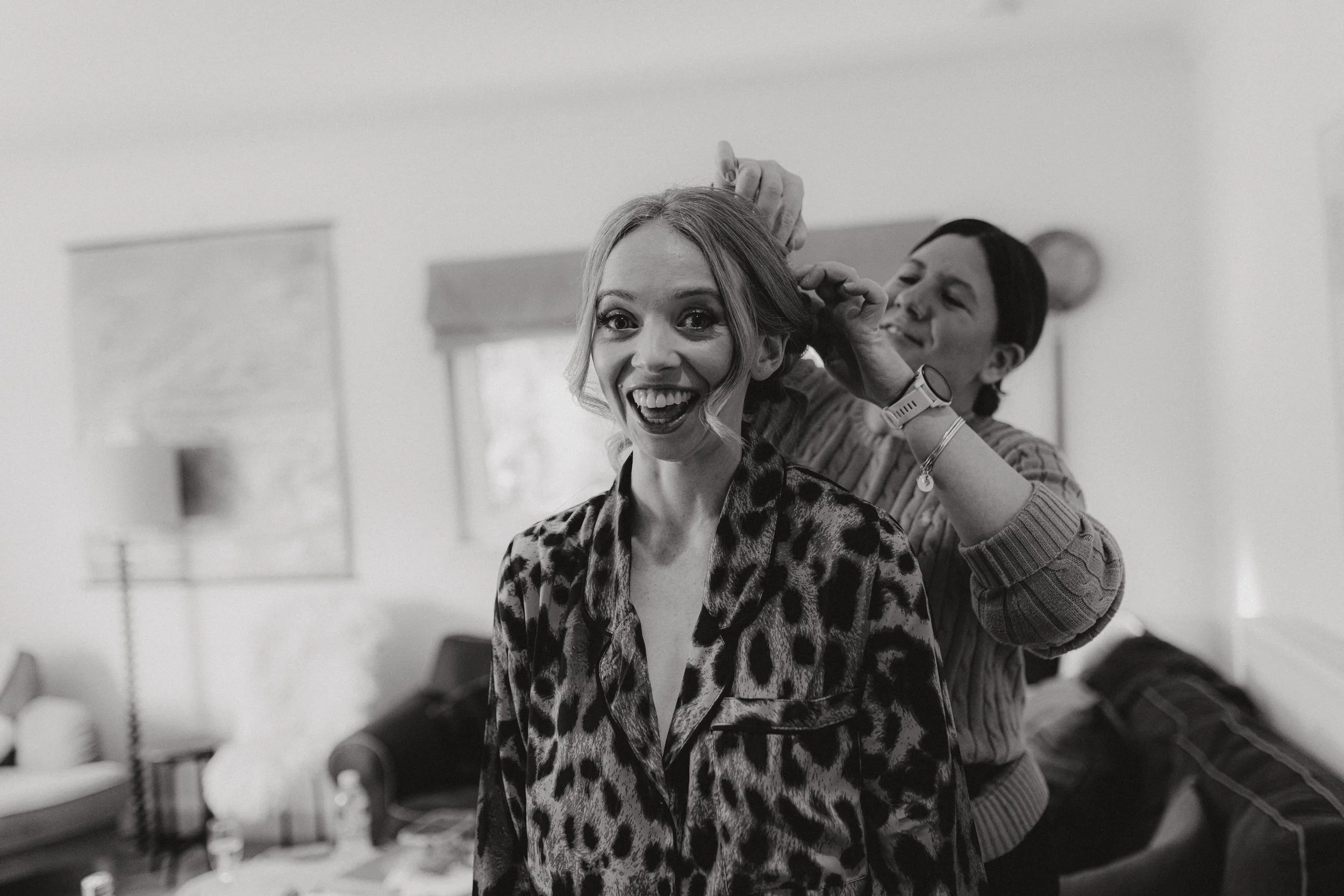 “Laura’s style suited me perfectly, she focuses on natural beauty, so even though the hair and make-up was stunning I still felt like me. She put on a great trial that helped me know what I could expect and was super collaborative as we designed the look. I think the most important thing was how calming and friendly she was on the day. I chose to get ready with my bridal party at home, which was lovely but stressful! She kept me breathing, distracted and made sure everything ran to time. She even helped me down the steps when I realised I hadn’t quite thought through wearing my large white stress to the venue in the rain!”